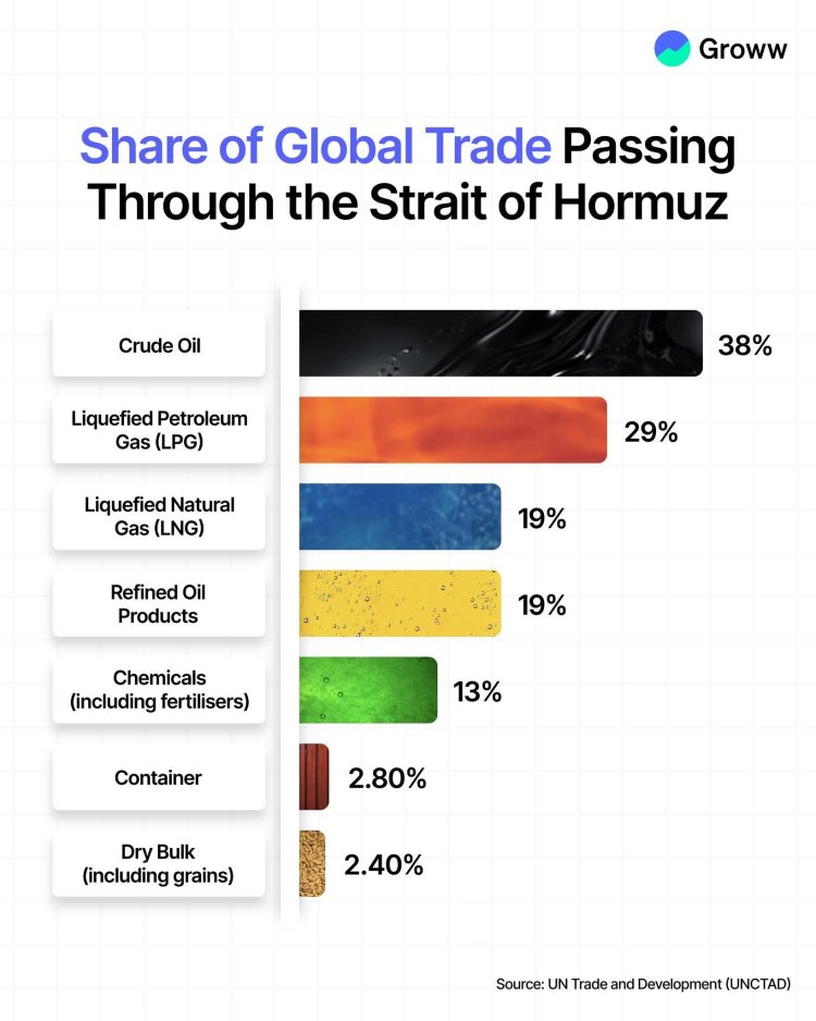 • ஹார்மூஸ் நீரிணை பகுதியளவில் மூடப்பட்டதால், பிரெண்ட் (Brent) உள்ளிட்ட சர்வதேச அளவிலான கச்சா எண்ணெயின் விலை 4 மடங்கு அதிகரித்துவிட்டது. கத்தாரின் ரஸ்லஃப்பான் எரிவாயு மீதான ஈரானின் பதில் தாக்குதலுக்கு பிறகு அமெரிக்க எண்ணெய்-எரிவாயு கார்ப்பரேட்களின் பங்குகள் வீழ்ச்சியை சந்தித்தன.